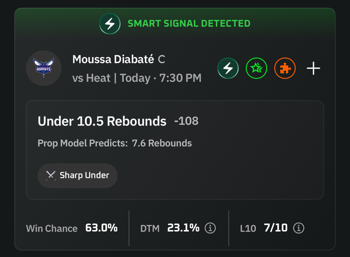 It is flagged as a Smart Signal, works well as a parlay leg, and is easy to execute thanks to built in line shopping and one click access to sportsbooks and prediction markets.